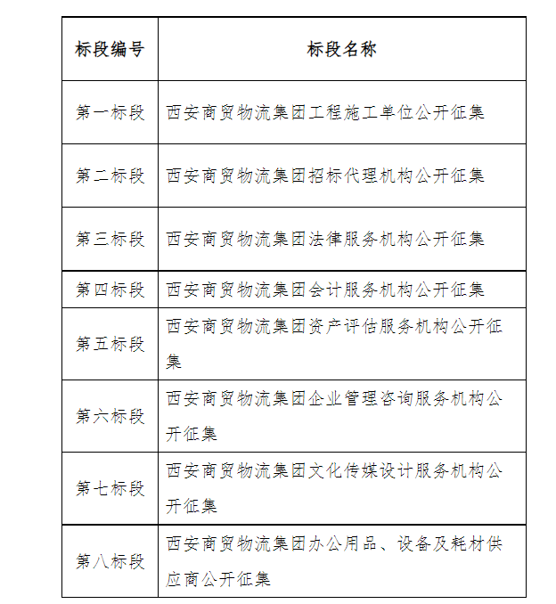 第二標段:西安商貿物流集團招標代理機構公開征集